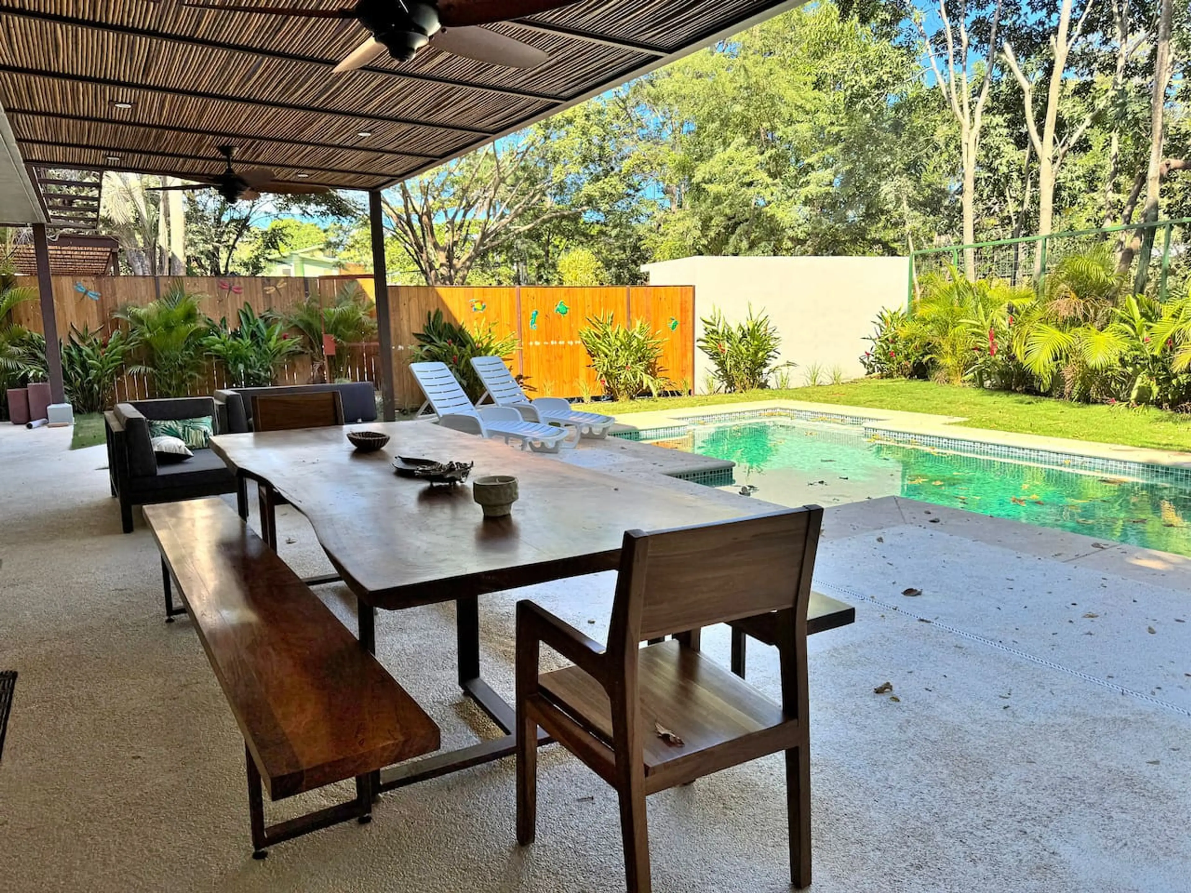Our Main Villa at Howlers Point is a modern, brand new , light-filled 4-bedroom, 4.5-bath home in Tamarindo, just a short walk to the beach. Perfect for families or groups, it features open living spaces, a second-floor yoga/hammock terrace, and a large covered BBQ dining terrace for entertaining ov...